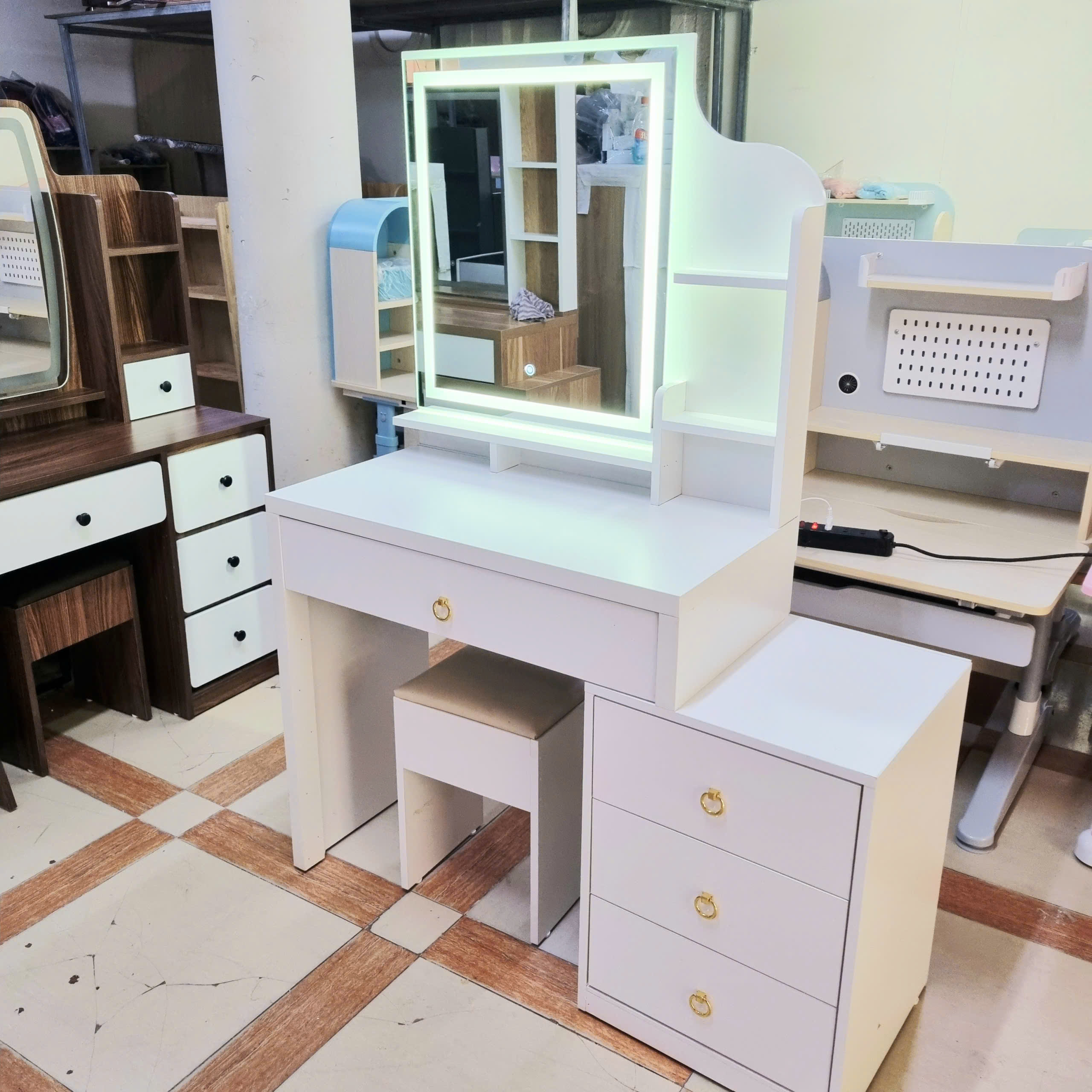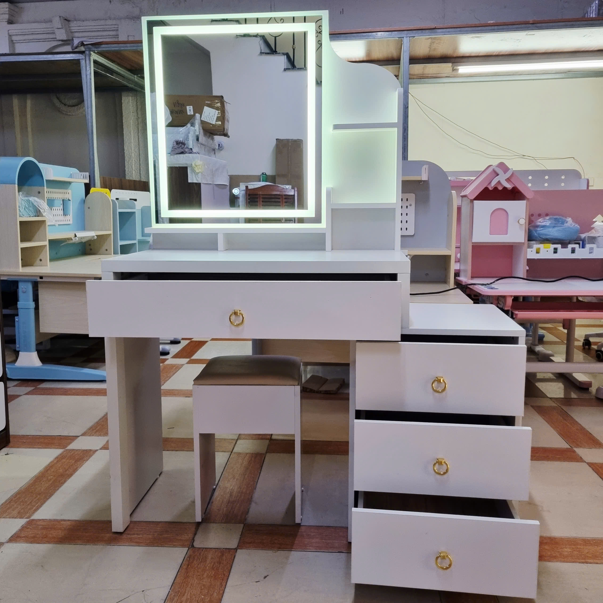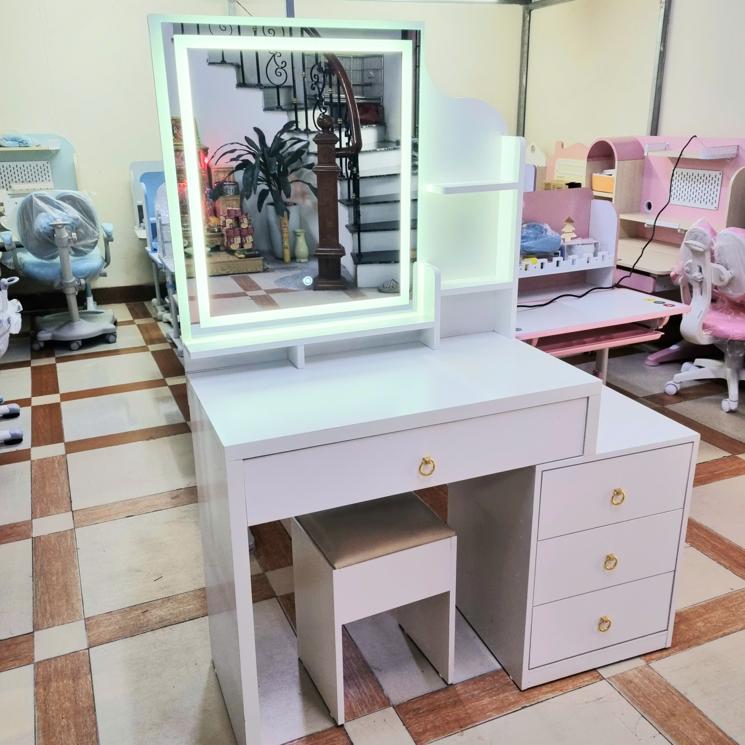- Tên sản phẩm :Bàn Trang Điểm Gương Đèn Led Màu Trắng Giá Rẻ